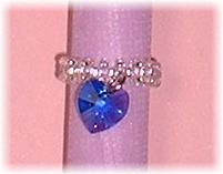 150.クリスタルハートリング ハート部分縦横約1センチ 800円 輝きが最高級といわれる、オーストリアのスワロフスキー社のハートビーズを使用しています。 指元で、ゆらゆらきらきらと輝きます。土台部分は、小さなシルバーカラーのビーズを編み込んであります。
